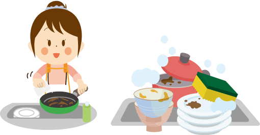 汚れたフライパンやお皿は、洗 う前に古い布切 れなどでふき取る。