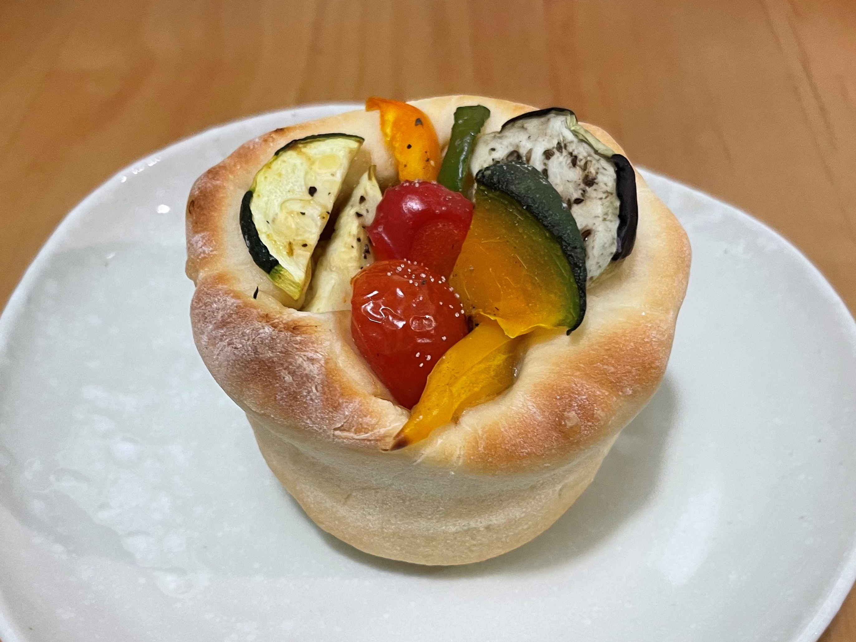 鯵の干物、チーズ、塩麹と発酵食品を上手に利用し、 焼き茄子ソースを合わせたアイデアが素晴らしく、材料の相性も良い、非常に完成度の高いレシピです。